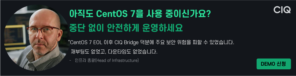 2024년 EOL(End-of-Service) 이후 CentOS 7에서 수백 개의 CVE가 발견되었습니다. CIQ는 이러한 CVE 중 많은 부분을 해결했으며, CIQ Bridge는 CentOS 7에 적절한 패치를 자동으로 적용하여 보안과 안정성을 유지할 수 있도록 지원합니다. CIQ Bridge는 CentOS 7에 적절한 패치를 자동으로 적용하여 보안과 안정성을 유지할 수 있도록 패치의 우선순위를 정하고, 패치를 푸시하고, 주기적으로 적용합니다.